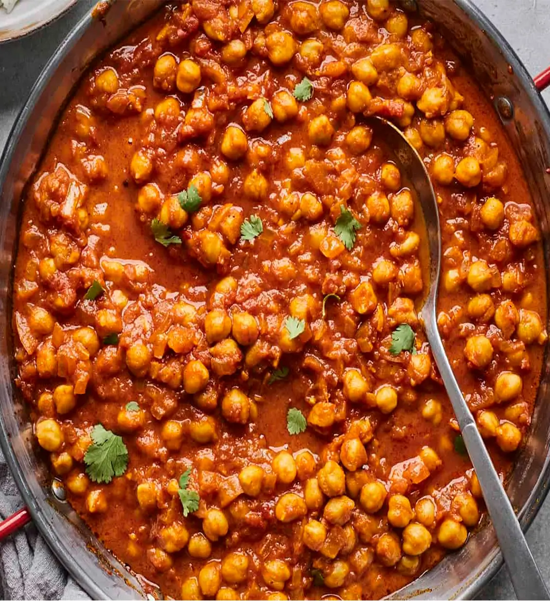 Spiced chickpeas with caramelised onions and tomato sauce—a delicious blend
